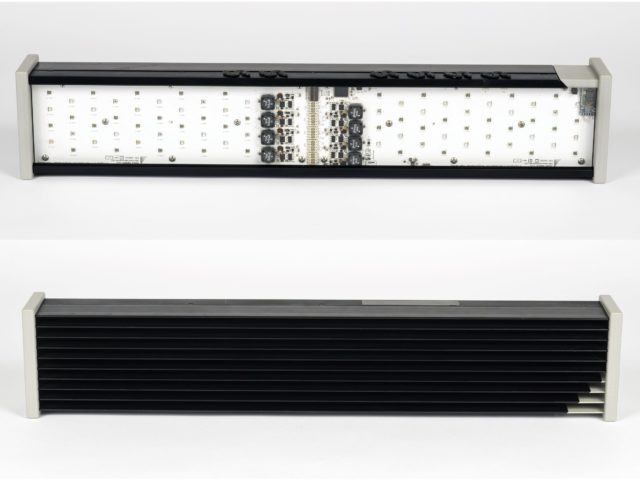 The first Rutgers experiment required 1 light in a small, single growth chamber. The Agile Spectrum design does not include a fan for cooling, as it has a robust heat sink providing passive heat transfer. As such, sufficient air circulation within the chamber is essential, as is normally the case. The capability to remotely locate the DC power supply allows for reduced thermal load on the growth chamber/vegetation and also minimizes environmental cooling requirements by approximately 10%. Of course, this reduced thermal load within the thermal chamber reduces overall chamber operating costs.